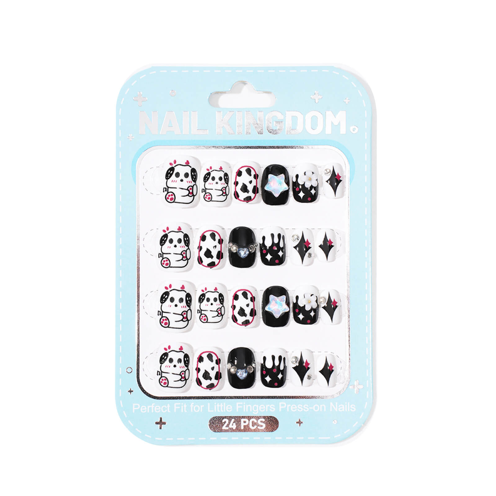 Bring on the cuteness overload with our little dot dog Press-On Nail set, the ultimate mix of fun and fantasy for your little one's fingertips. This cute puppy fake nail set is packed with personality, featuring super cute puppy characters, cow spots, sparkling stars, shiny gems, and dramatic black crowns and diamonds – all in a trendy pink, black, and white color scheme. Whether they’re into cute animals or love a little sparkle, these easy-to-use, safe-for-kids press ons are perfect for expressing their one-of-a-kind style. Ideal for parties, playdates, or just everyday fun, this set turns little hands into mini masterpieces.🐶