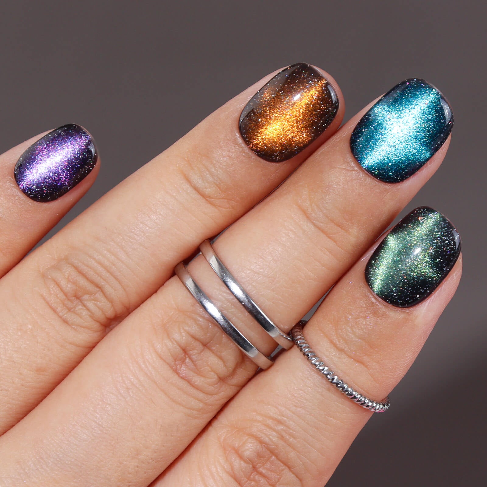 Love Blingbling nails? You need to try this dazzling star press-on nail set-a vibrant explosion of colorful neon hues, adorned with sparkling diamond-like glitters. These shiny magnetic fake nails feature playful, ever-changing cat eye stars that shimmer and dance with every movement, creating a special effect. The short squoval design adds a touch of sweetness and cuteness, while the intricate glitter and shifting star patterns ensure that your nails shine brilliantly from every angle. Perfect for those who love a bold, enchanting look with a hint of whimsy, these cute Twinkle Star fake nails are your ultimate DIY manicure for making a sparkling statement!